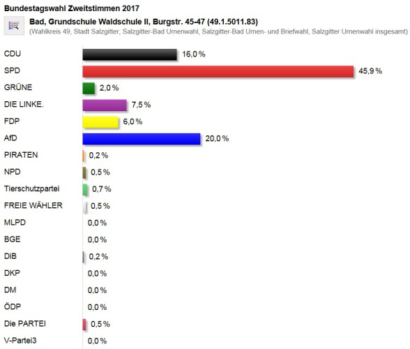 Auf aktuellen Live-Seiten informierte die Stadt Salzgitter im Internet unter www.salzgitter.de sowie über eine Wahl-App am Wahlabend über den Ausgang der Bundestagswahl in Salzgitter (Teilergebnis). Dieser Service der Stadt wurde von sehr vielen Interessierten genutzt, um sich zeitnah über die Entwicklung der Wahlergebnisse in Salzgitter/Wolfenbüttel zu informieren.